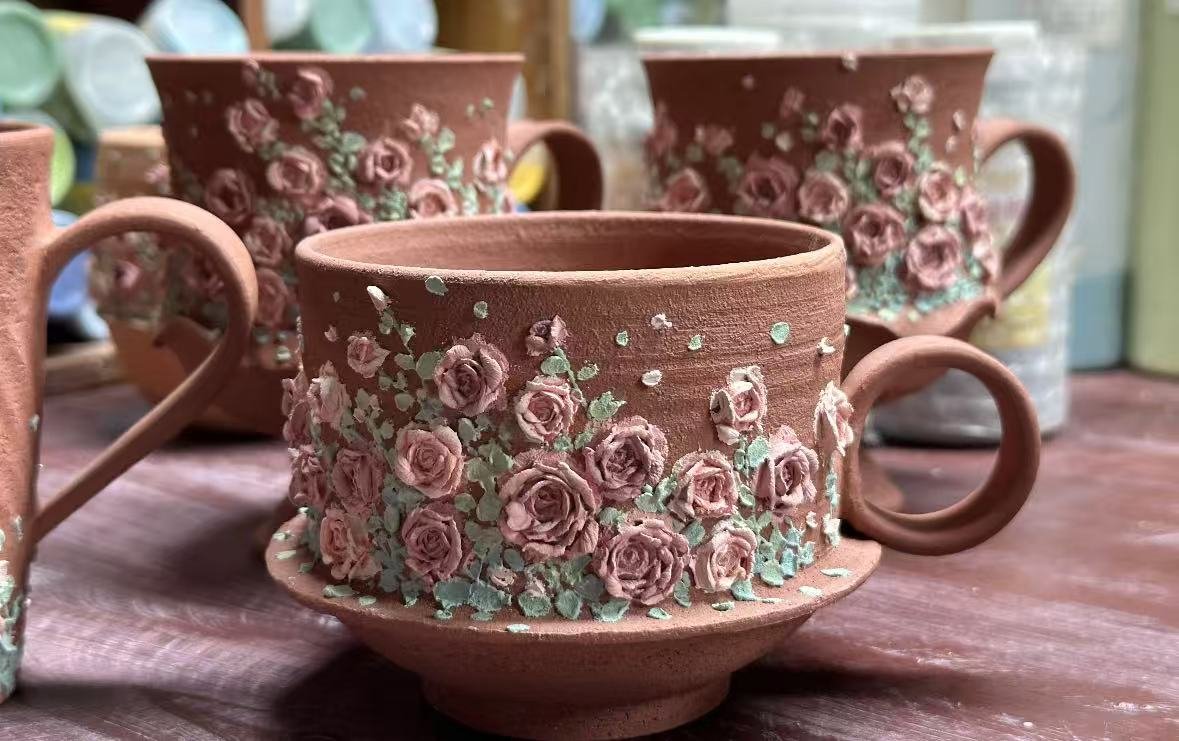 Each of my pieces is entirely handmade — from shaping the clay to sculpting every tiny rose petal. No two are ever exactly the same, and that’s the magic. You’re not just buying a mug — you’re holding a piece of time, care, and human touch.