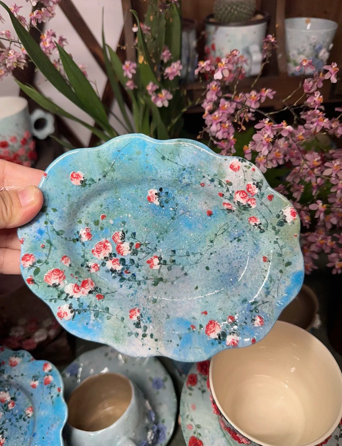 To preserve the intricate hand-painted details and vibrant floral colors, we recommend gentle handwashing. Avoid using dishwashers or abrasive cleaning tools to maintain the plate’s artisanal beauty.